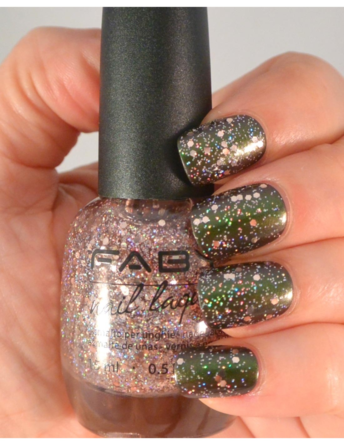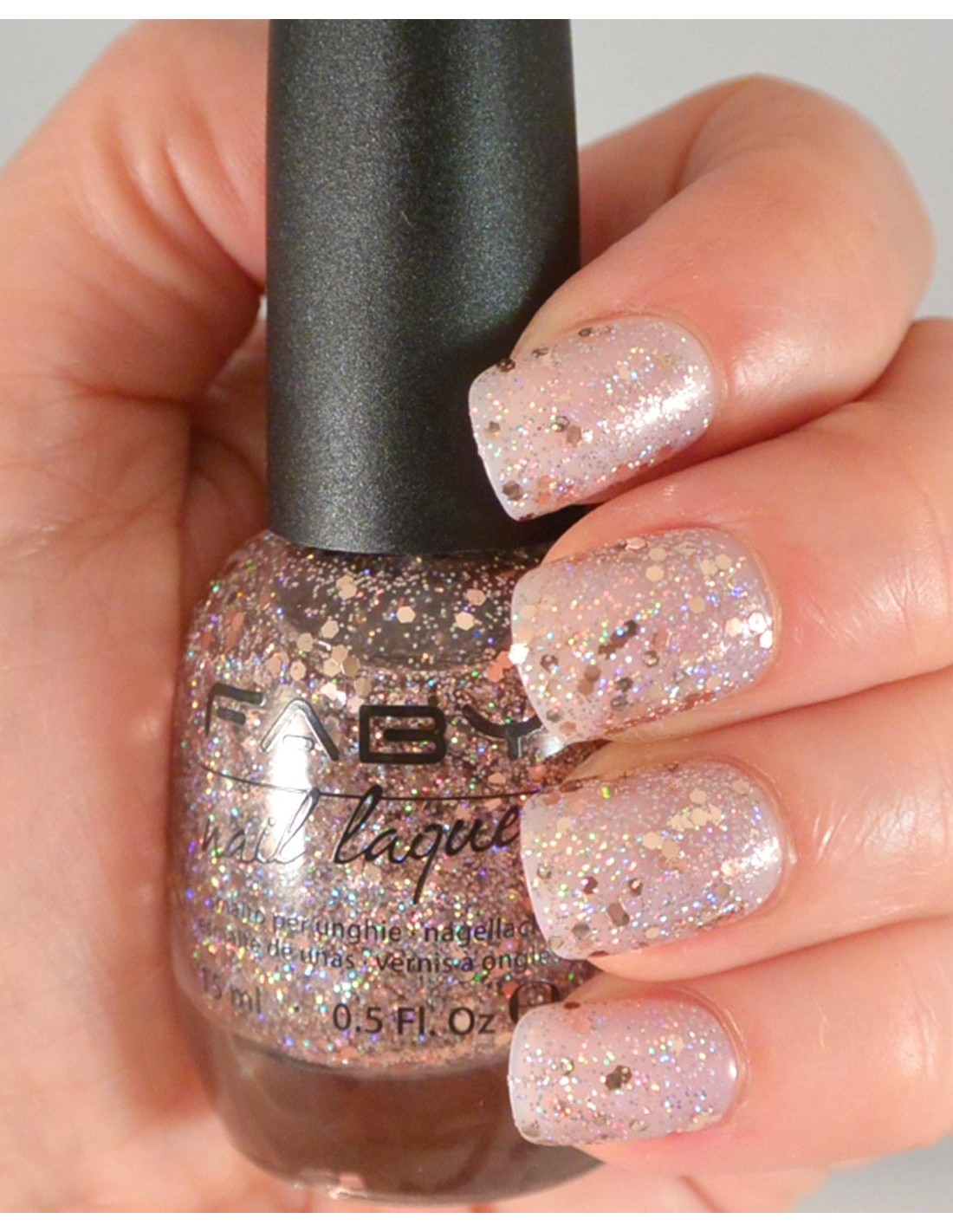 Smalto unghie rosa glitter della collezione Faby Heritage.
